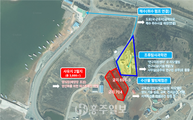 홍성군은 올해 추경예산을 확보해 ‘육상 김 양식 테스트베드 조성 사업’의 기본 계획을 세운 후 2026년에는 실시설계에 들어갈 계획이다. 2027년쯤 조류탐사과학관과 수산물웰빙체험관을 김 양식 관련 연구 시설로 활용하기 위해 리모델링 공사를 하고, 이후 본격적인 육상 김 양식 기술개발을 한다는 방침이다. 이뿐만아니라 조류탐사관 주위의 부지를 매입해 김 배양장도 조성한다는 계획이다.
