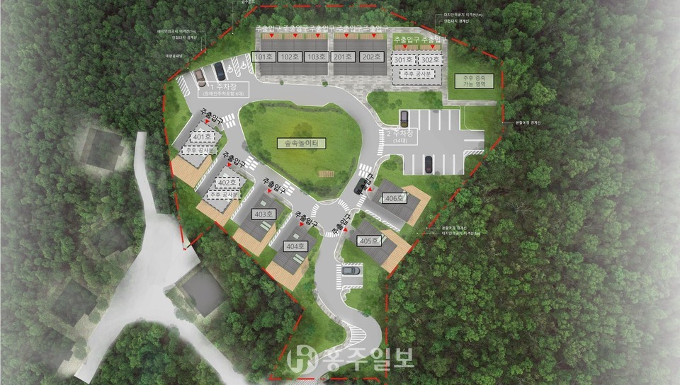 4인실, 다락 6인실), 숲속의집(4개동, 6인실×4개실), 숲속의집(추후공사, 2개동, 6인실×2개실)과 주차공간은 총 27면(장애인주차 2대 포함, 실주차 32대)이 조성될 계획이다.