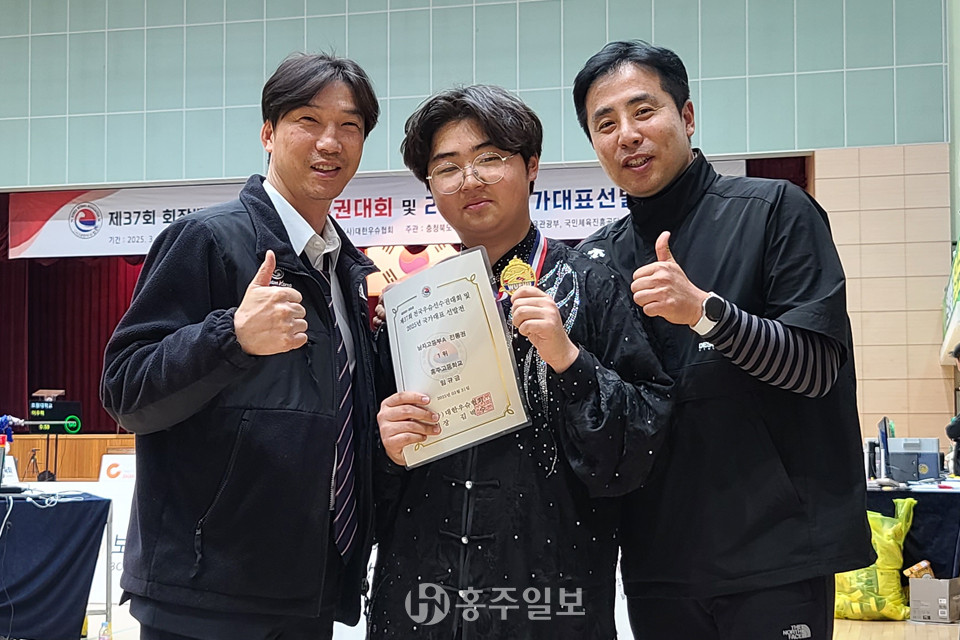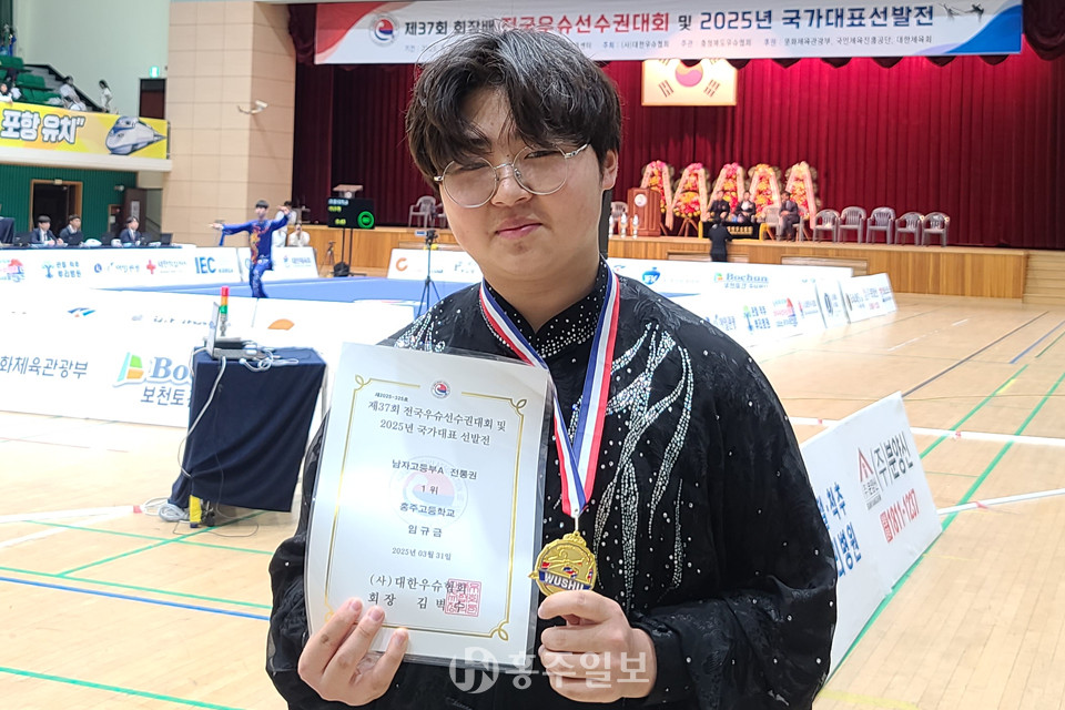 임규금 학생은 지난달 28일부터 31일까지 나흘간 충북 보은군 국민체육센터에서 열린 ‘제37회 회장배 전국우슈선수권대회 및 2025년 국가대표선발전’에서 투로(연기) 영역 두 종목에 출전해 전통권 1위, 전통병기 2위를 차지해 당당히 금메달과 은메달을 목에 거는 쾌거를 이뤘다.