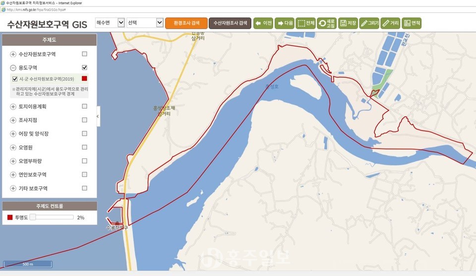 홍성호 수산자원 보호구역 해제 문제 남아있어