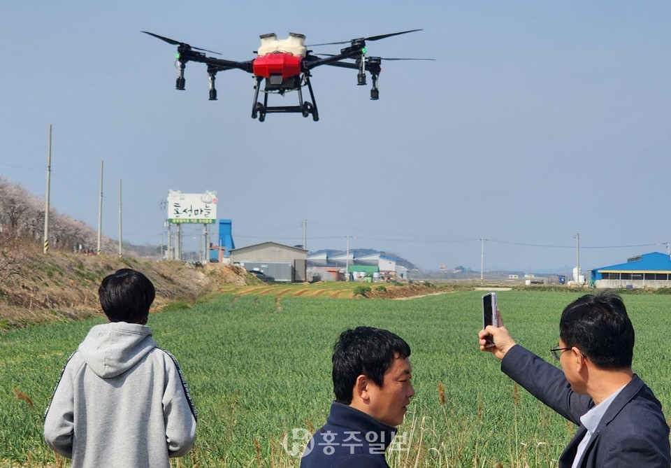 홍성군병해충민간방제단연합회(회장 조서현)가 오늘(16일) 서부면 궁리 마늘 재배단지에서 병해충 드론 방제 시연회를 개최하며 드론을 활용한 스마트 농업 방제 기술을 선보였다.<사진>