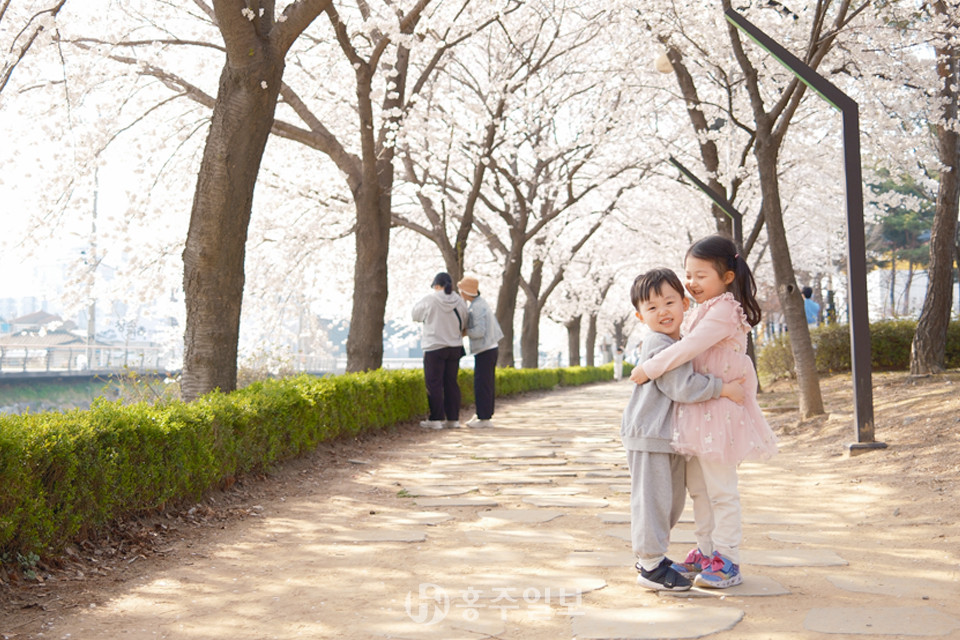 [홍주일보 이정은 기자] 웅크리고 있던 꽃망울이 기지개를 켜고 꽃잎이 바람과 살갑게 춤을 춘다. 봄으로 자라난 얼룩은 걷는 자를 어루만진다. 환희라는 봄의 다른 이름으로. 사진은 지난 11일 홍성읍 대교리 대교공원을 찾은 남매가 봄기운을 느끼며 서로를 따뜻하게 안는 모습.