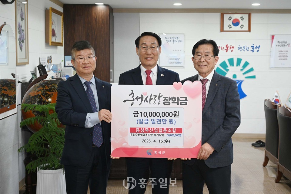 홍성축산업협동조합(조합장 이대영)이 지난 16일 (재)홍성사랑장학회에 지역인재 육성을 위한 장학금 1000만 원을 기탁했다.<사진>