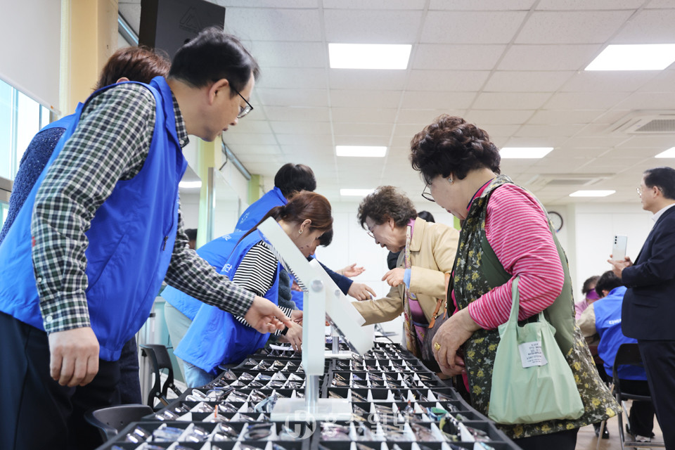 이날 홍성군노인종합복지관을 찾은 신청자 어르신은 총 50명으로, 시력검사와 정확한 도수 확인을 거쳐 기호에 맞는 안경테를 선택하는 순으로 이어졌다. 이후 1주일 이내 다비치안경 홍성점을 방문해 완성된 안경을 수령할 수 있다.