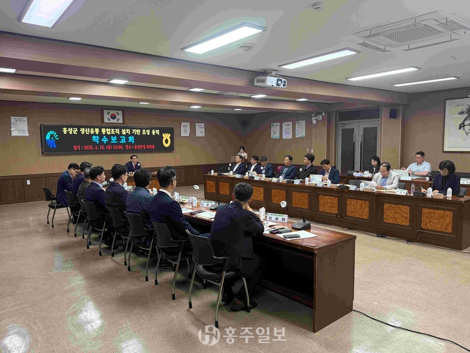 홍성군은 지난 18일 홍성군청 회의실에서 홍성군 생산유통통합조직 설치 기반 조성 연구용역 착수 보고회를 가졌다.<사진>