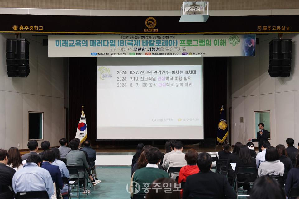 [홍주일보 홍성=이정은 기자] 홍주중학교(교장 유영석)는 지난 16일 신암관에서 한국과학창의재단이 주최하고 학교법인 신암학원 홍주중학교가 주관한 ‘IB(국제 바칼로레아) 교육의 이해’ 설명회를 개최했다.