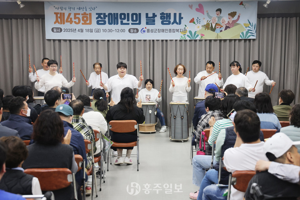 [홍주일보 홍성=김영정 기자] ‘제45회 장애인의 날’을 맞아 지난 18일 홍성군장애인종합복지관에서 기념행사가 성황리에 개최됐다. 이번 행사는 장애인과 지역주민, 복지관 관계자들이 한자리에 모여 장애인의 권리와 인권에 대한 인식을 높이고, 모두가 행복한 사회를 만들어가자는 다짐을 나누는 뜻깊은 자리였다.