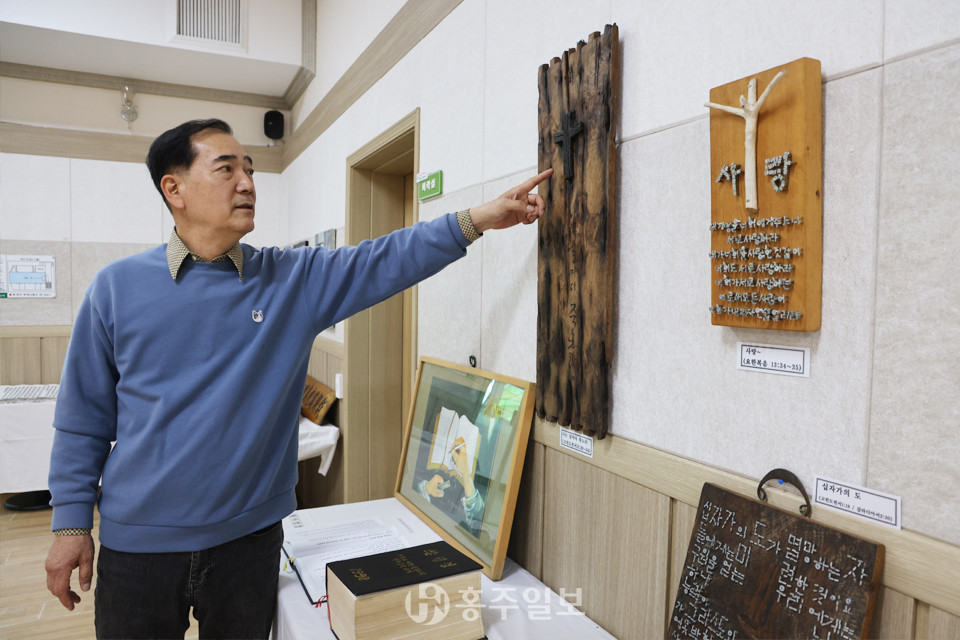 박상용 작가는 홍성제일감리교회의 집사이자 예전문화창고박물관의 관장으로, 지난 10여 년간 십자가와 필사 작품 전시를 이어온 이력을 갖고 있다.