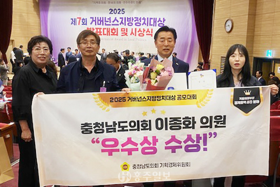 [홍주일보 한기원 기자] 충남도의회는 23일 국회의원회관 대회의실에서 열린 ‘2025 거버넌스지방정치대상 공모대회’에서 이종화 의원(홍성2·국민의힘·사진)이 지방의원부문 경제활력 증진 분야에서 ‘우수상’을 수상했다고 밝혔다.