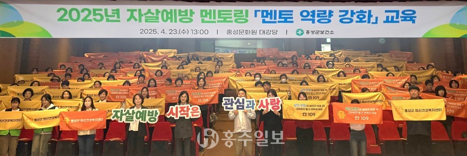 홍성군보건소는 지난 23일 홍성문화원 대공연장에서 ‘2025년 자살예방 멘토링 역량강화 교육’을 진행했다.<사진>