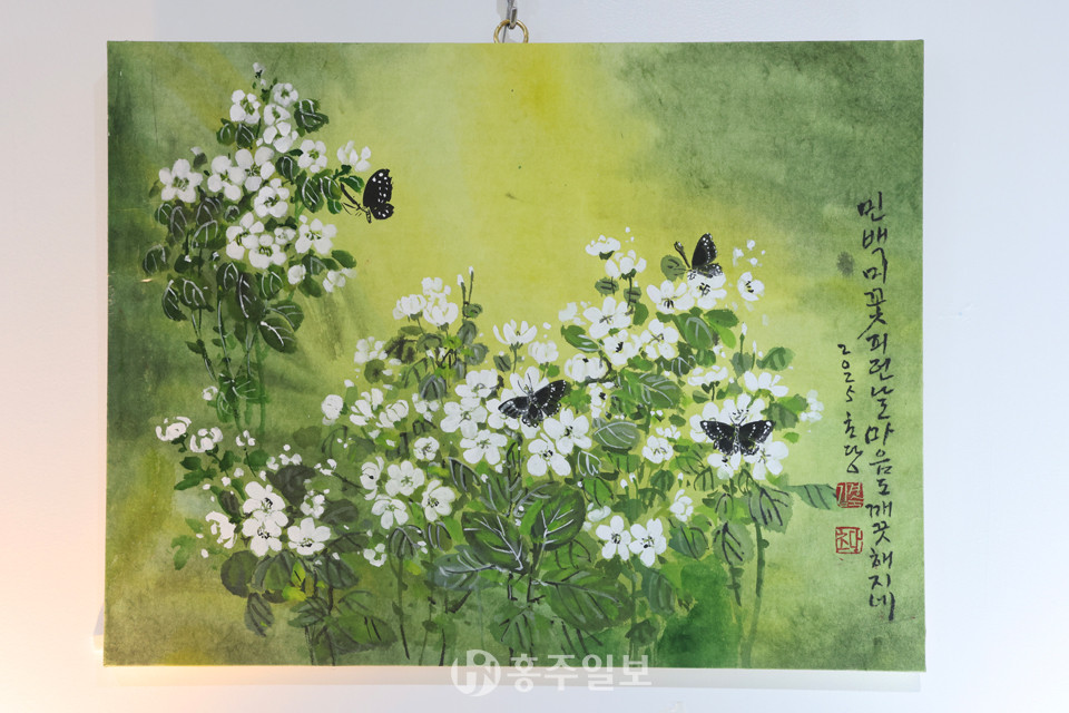 [홍주일보 홍성=이정은 기자] 남당바다의 절경이 훤히 내려다보이는 속동갤러리(서부면 남당항로 689)에서 초당(陗堂) 김경숙 화백의 개인전이 열렸다. 지난 1일부터 시작된 ‘고향에서, 초당 김경숙 그림 전’은 오는 31일까지 진행된다.