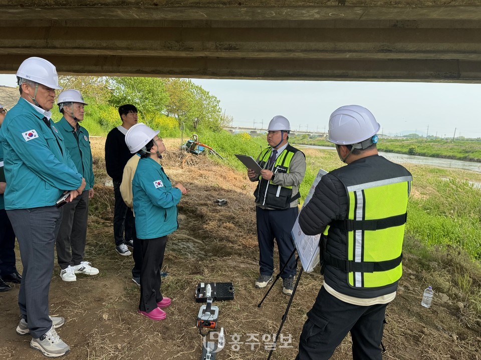 홍성군은 지난 7일 공무원 및 토목 민간전문가 등을 포함한 민·관 합동점검반을 편성해 홍북읍 석택리에 위치한 택리교(교량) 집중안전점검을 실시했다.