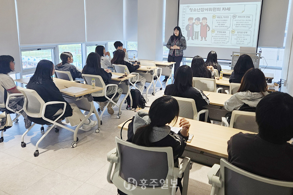 [홍주일보 홍성=한기원 기자] 홍성군청소년상담복지센터(센터장 조현정)에서 운영하는 홍성군청소년참여위원회 ‘한빛 14기’의 정책 발굴 교육이 지난 11일 센터 회의실에서 진행됐다.<사진>