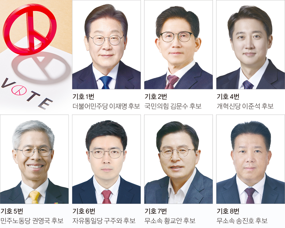 지난 10~11일 진행된 후보자 등록에 총 7명이 최종 접수했다. 최종 등록된 후보자는 △기호 1번 더불어민주당 이재명 △기호 2번 국민의힘 김문수 △기호 4번 개혁신당 이준석 △기호 5번 민주노동당 권영국 △기호 6번 자유통일당 구주와 △기호 7번 무소속 황교안 △기호 8번 무소속 송진호 후보 순으로, 기호 3번은 원내 3당인 조국혁신당이 후보자를 내지 않으면서 최종 결번이 됐다. 이에 따라 투표 당일 사용되는 투표용지에는 기호 3번은 공란으로 비게 된다.