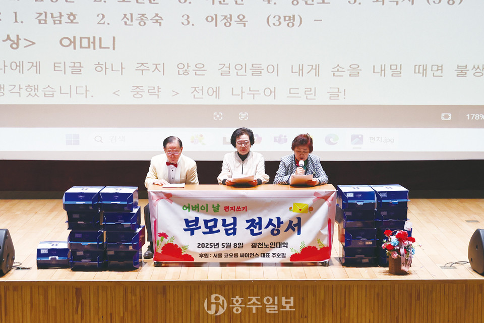 한 학생이 쓴 편지를 읽다 눈시울을 붉힌 김남호 부회장은 다음 편지 낭독 순서로 넘어가자 무대 뒤로 자리를 옮겨 눈물을 훔쳤다. 이어 행사는 어머니와 아버지의 은혜를 되새기는 영상을 감상하며 마무리됐다.