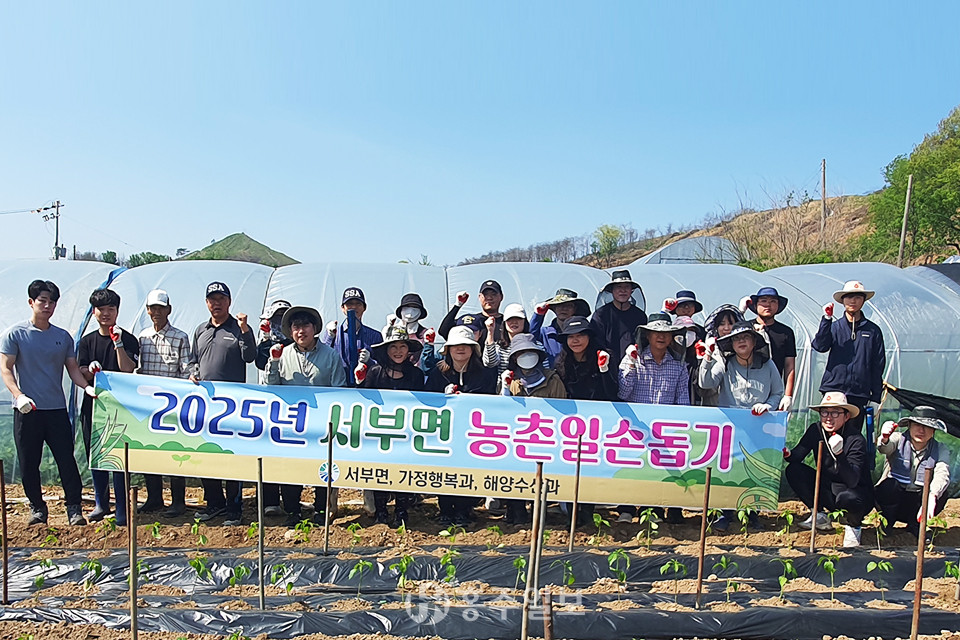 이번 일손돕기에는 서부면을 비롯해 군 가정행복과, 해양수산과 소속 직원 총 30여 명이 참여해 고추 지지대 설치 및 고정, 멀칭 비닐정리 등 고된 농작업을 함께하며 구슬땀을 흘렸다.