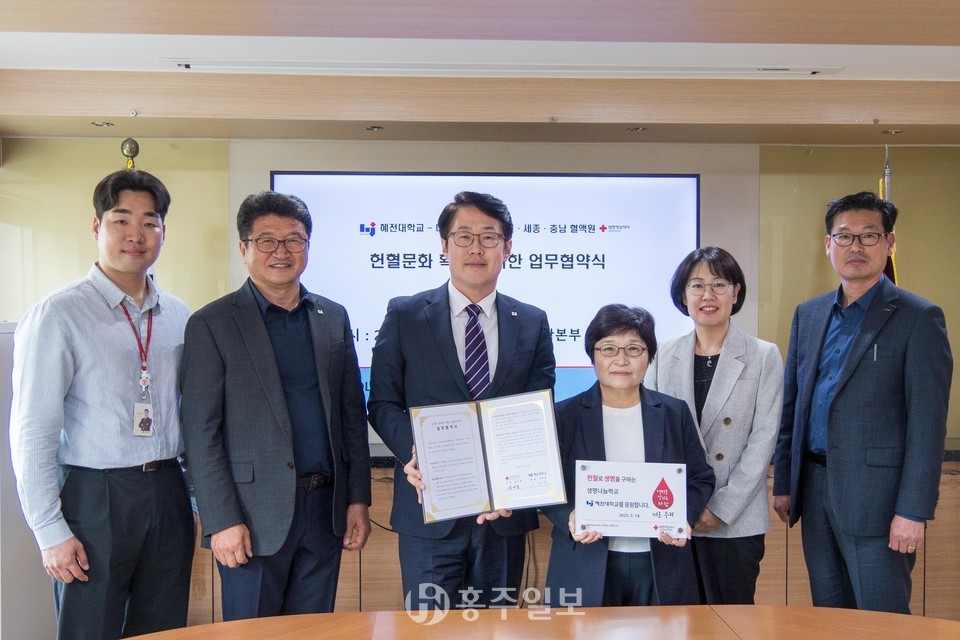 혜전대학교(총장 이혜숙)는 지난 14일 대학본부 회의실에서 사회적 가치 실현과 헌혈 문화 확산을 위한 업무협약을 체결했다.<사진>