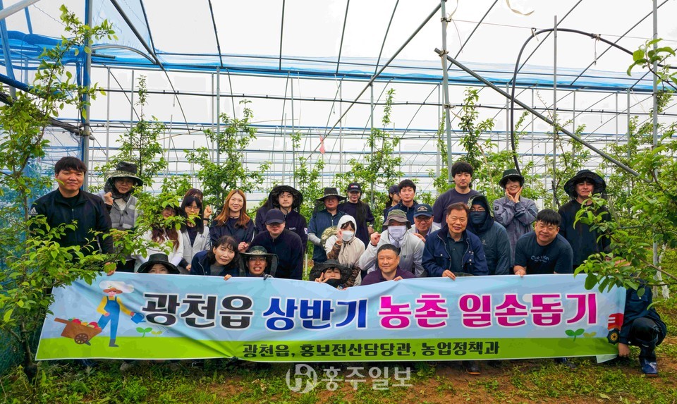 광천읍(읍장 정동규)은 군청 직원들과 함께 본격적인 농번기를 맞아 일손부족으로 어려움을 겪고 있는 과수 농가를 찾아 농촌일손돕기를 추진했다.
