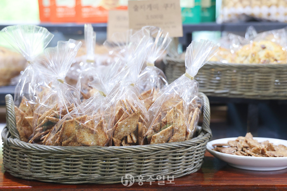 “남는 지게미를 어떻게 활용할지 고민하면서 다양한 시도를 해봤는데, 그때 얻은 가장 큰 성과가 빵과 쿠키였어요. 빵을 만들 때도 발효 과정을 거치니까 술지게미를 넣어보면 어떨까? 이런 생각에서 시도하게 된 거예요. 그런데 아무래도 저희가 제빵이나 제과에 능숙한 사람들이 아니다 보니 모양이 조금 조악했죠. 하하하하하.”