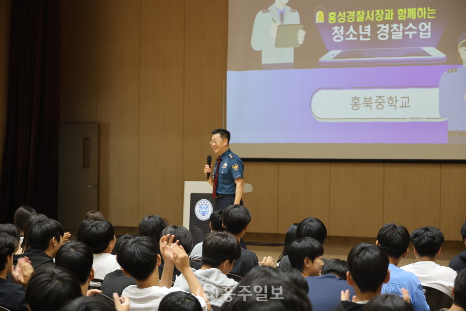 이날 교육은 올해 3월 1일 개교한 홍북중학교 학생들을 대상으로 최근 증가하는 사이버 학교폭력, 도박, 딥페이크 등 청소년 범죄의 심각성을 중점적으로 설명하고 선제적인 교육을 통해 예방 효과를 높이고자 이동규 경찰서장이 직접 학생들과 소통하며 교육하는 시간을 가졌다.