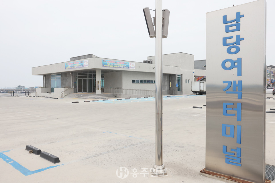 남당항 여객터미널은 해양수산부 소속의 지역 공공기관인 대산지방해양수산청이 21억 원의 예산을 들여 지난 2022년 11월경 완공됐지만, 1999년 먼저 건설된 방파제로 인해 내항에 토사가 쌓여 수심이 얕아지는 문제로 현재 도선과 어선 모두 터미널에 접근할 수 없는 상황이다.