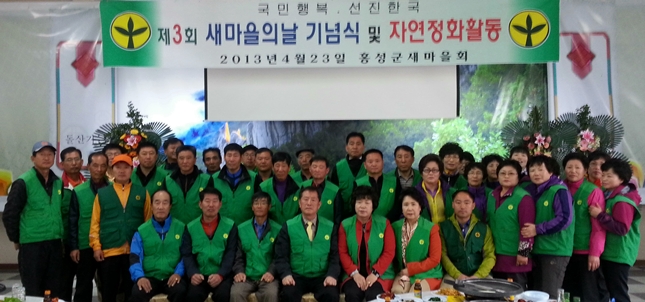 홍성군 새마을회(회장 김종만)는 지난 22일로 43주년을 맞은 새마을운동제창일을 기념해 지난 23일 돌산가든에서 김석환 군수를 비롯한 기관단체장, 새마을지회 회원들이 참석한 가운데 제3회 새마을의 날 기념식을 거행했다. <사진>