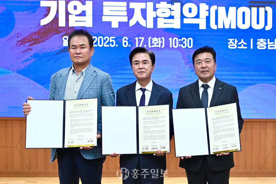 홍성군은 이날 ㈜은성전장과 ㈜광천김 2개 사와 223억 원 규모의 합동 투자협약(MOU)을 체결하며 지역경제 활성화에 힘을 보탰다.