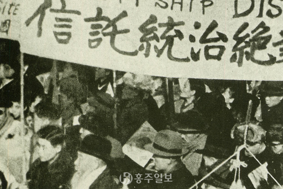 이런 상황에서 우익이 좌익을 압도할 수 있는 절호의 기회가 찾아오는데, 바로 ‘신탁통치’문제였다. 우파는 12월 31일 모스코바삼상회의에서 신탁통치가 결정되자 긴급회의를 열어 ‘반탁투쟁 홍성군위원회’ 결성과 1월 2일 홍성고등학교에서 ‘신탁통치반대 홍성군 궐기대회’를 열기로 결정했다.