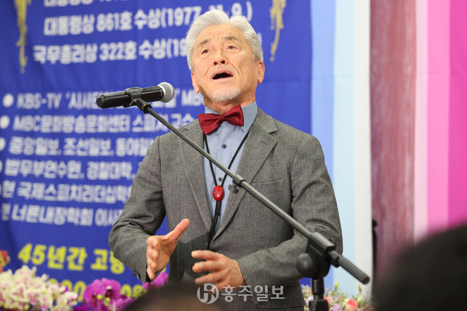 [홍주일보 홍성=이정은 기자] 지난 5월 검은등뻐꾸기가 우짖는 봄의 언덕에서, 편기범 국제스피치학회장의 팔순 잔치를 위해 고향을 찾은 장사익 소리꾼을 만났다. 그를 보자마자 희한하게도 단어 하나가 떠올랐다. ‘음미’ 무언가를 계속해 깊이 새기고 느끼는 자의 얼굴, 글자가 그의 얼굴에 살포시 내려앉아 중첩됐다. 생경한 첫인상이었다.