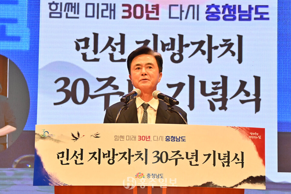 [홍주일보 한기원 기자] 김태흠 충남지사가 민선 지방자치 30주년 기념식에서 “지방소멸·불균형을 넘어 ‘지방시대’를 열겠다”며 충남 비전을 선포했다. 김 지사는 △농업·농촌 대개혁 △탄소중립경제 선도 △미래 먹거리 창출 △지역 특색 살린 발전 △실질적 저출산 대책 등 5대 전략을 제시했다. 특히 홍성·예산 내포권을 행정·산업·교육·문화가 어우러진 혁신도시로 육성하겠다고 밝혔다.