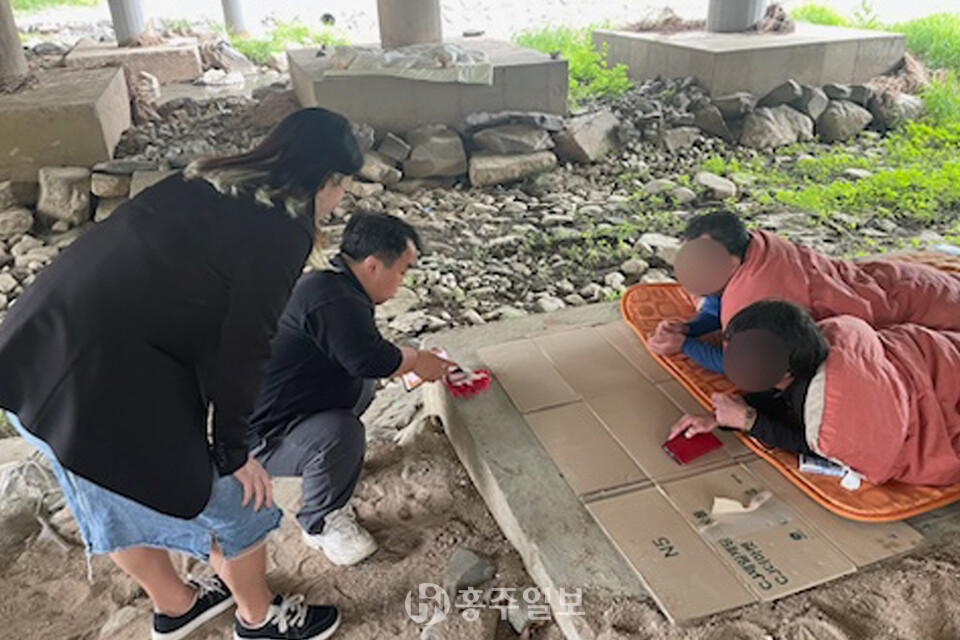 또한, 군은 12명으로 구성된 4개 현장대응반을 편성해 노숙인 주요 발생지역(홍성·광천역, 버스터미널, 다리 밑, 공원 등)에서 주 1회 야간 순찰을 실시한다. 순찰 중 발견된 노숙인에게는 폭염 대응 건강수칙과 국민 행동요령을 안내하고, 임시거처로의 안전한 귀가를 지원하며, 필요한 복지서비스도 제공한다. 이와 함께, 독거노인과 거동불편자 등 폭염취약계층에 대한 집중 관리와 방문 모니터링을 실시해 현장 중심의 보호대책을 강화하고 있다.