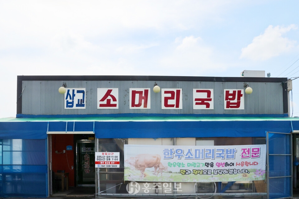 조용한 거리 한복판에 자리한 ‘삽교소머리국밥(대표 강영규)’은 마치 오래된 나무 그루터기처럼 햇살 속에 반쯤 잠겨있었다. 여름의 태양은 모든 것을 짙게 물들였고, 순간순간 유리창에 흐릿한 풍경을 덧칠했다.