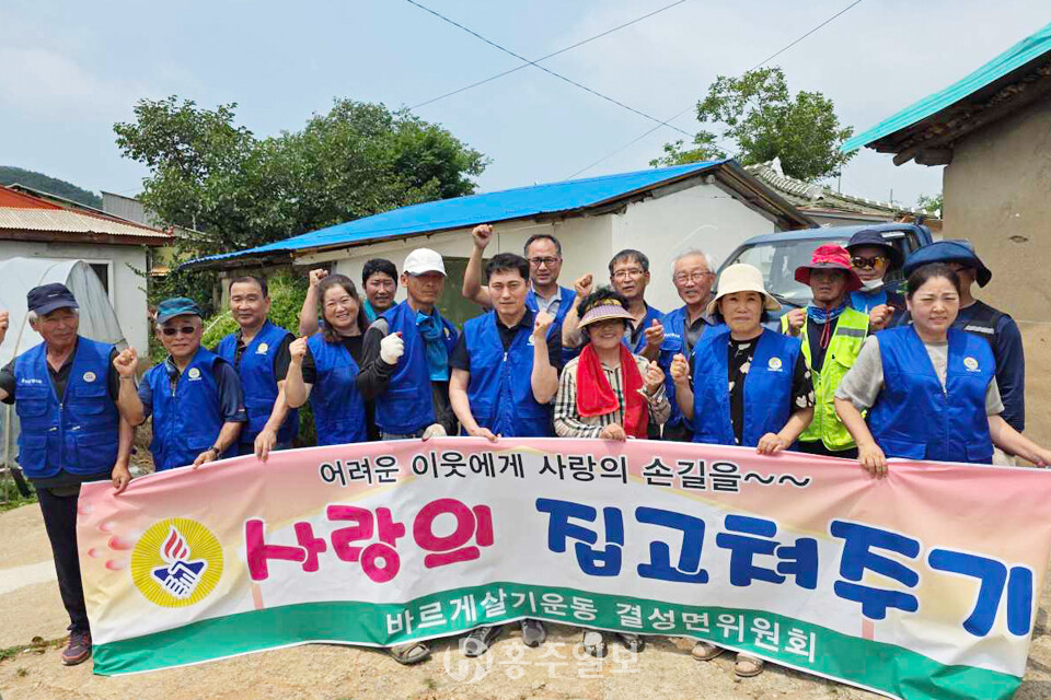 결성면 바르게살기위원회(회장 백승직)는 지난 7일 열악한 주거환경에서 지내는 지역 내 취약계층 2가구를 대상으로‘사랑의 집 고치기’봉사활동을 실시했다. 회원들은 노후된 벽지와 바닥을 교체하고, 비가 오면 새는 지붕을 수리해 어르신들이 쾌적한 환경에서 지낼 수 있게 새롭게 단장했다. 봉사현장은 7월의 폭염 만큼이나 뜨거운 열정으로 가득했다.