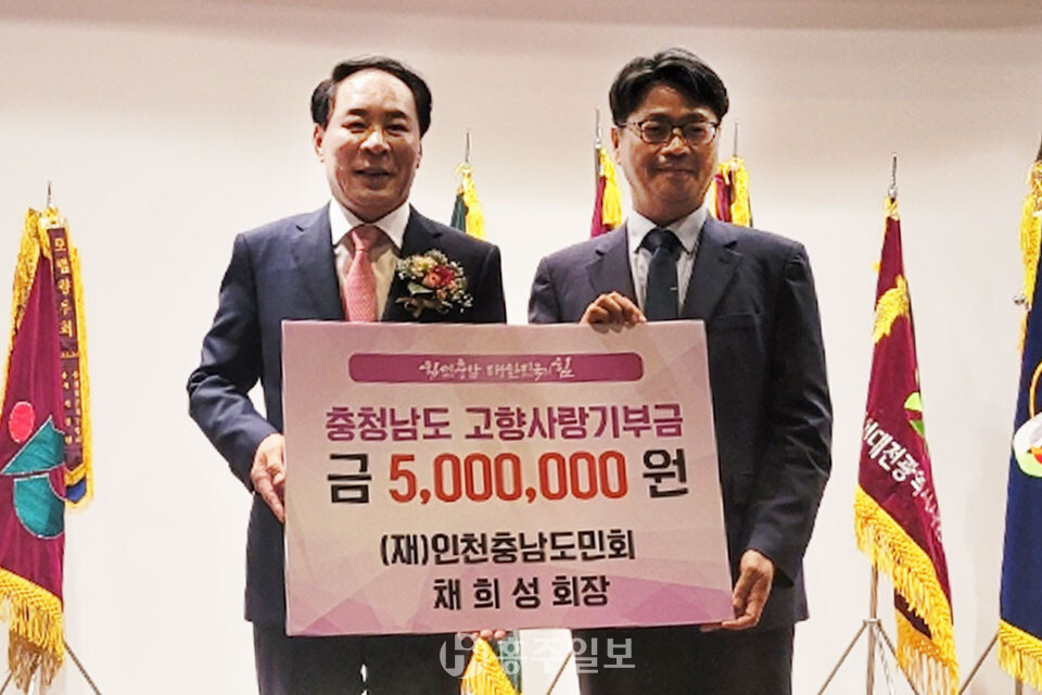 [홍주일보 한기원 기자] 채희성 제20대 재인천충남도민회장이 충남도에 고향사랑기부금 500만 원을 기탁했다.