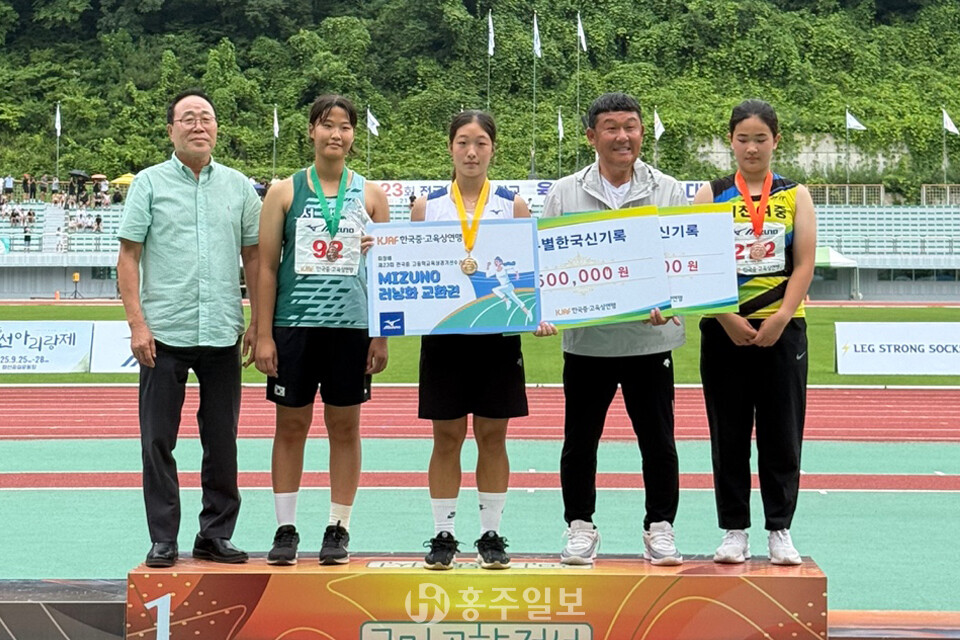 홍여중 3학년 박혜린 선수는 창던지기 종목에서 1위, 금메달을 차지하는 동시에 51.59m를 기록하며 한국 여중부 신기록을 갈아치웠다. 박 선수는 지난 5월에 열린 ‘제54회 전국소년체육대회’에서도 같은 종목 50.79m를 경신하며 신기록을 세운 바 있다. 즉, 불과 두 달여 전 자신이 세웠던 신기록에 80cm 앞질러 거듭 최고 기록을 세운 것이다.