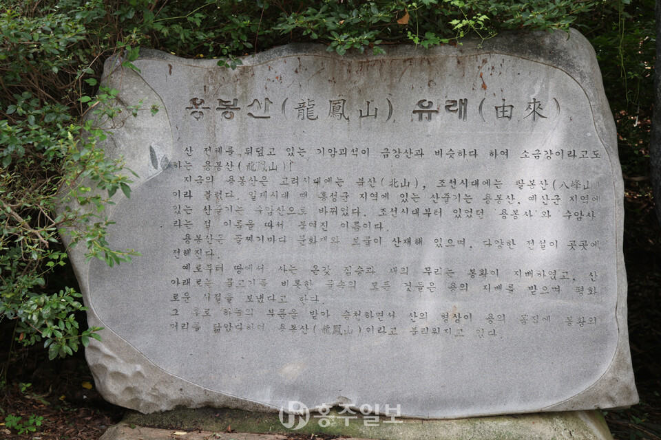 [홍주일보 홍성=김영정 기자] 홍성의 대표 명산인 용봉산의 명칭 유래를 둘러싸고, 현장에 설치된 표지석 문구가 역사 기록과 다를 뿐만 아니라 오해를 불러일으킬 수 있어 개정을 요구하는 목소리가 커지고 있다.