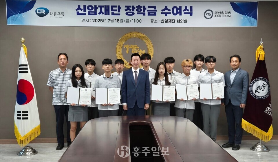 [홍주일보 홍성=한기원 기자] 대륭그룹(회장 이주엽)은 지난 18일 하계방학을 앞두고 2025학년도 1학기 동안 모범적인 교육활동을 펼친 홍주고등학교 학생 10명을 ‘특별장학생’으로 선발하고 장학금을 수여했다.