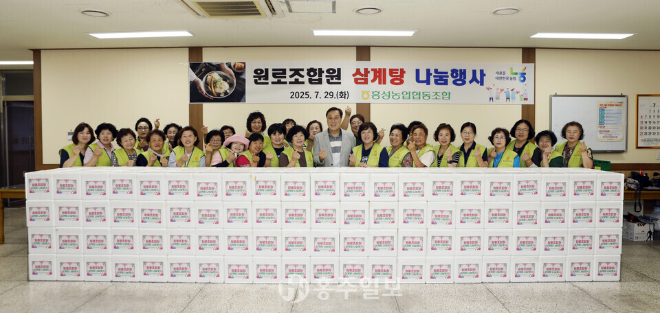 홍성농업협동조합(조합장 박문수)은 지난달 29일 홍성농협 초창기 성장과 발전의 주역이었던 원로 조합원들께 전 임직원이 감사의 마음을 담은 ‘삼계탕 나눔 행사’를 실시했다.