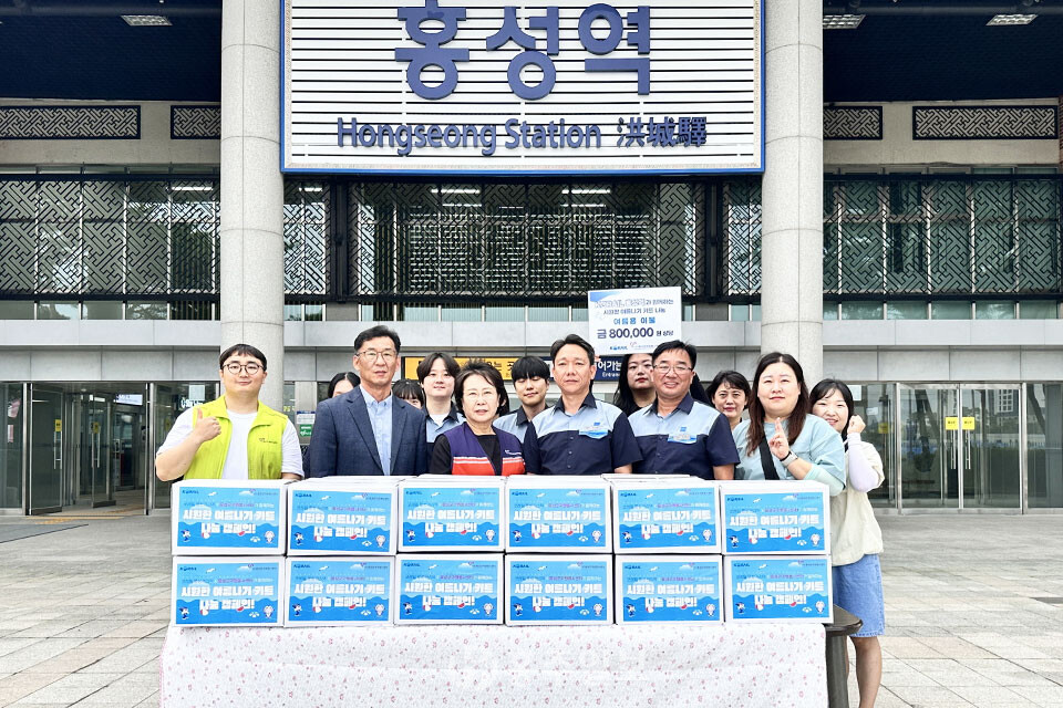 이번 나눔 활동은 코레일(KORAIL)홍성관리역의 사회공헌 활동과 ESG실천의 일환으로 진행됐다. 여름나기 키트 전달식 직후 코레인 홍성관리역 직원들은 취약 가정을 직접 방문해 이불을 전달하며 나눔의 마음을 전했다.