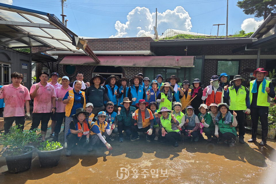 특히 제80주년 광복절인 15일에는 공동체 정신을 발휘해 수해 복구 활동에 나섰다. 정희채 읍장을 비롯해 직원 10명, 기관·단체 50여 명이 새벽부터 가정리 피해 가정을 방문해 토사 제거 등 복구 작업을 도왔다. <사진>