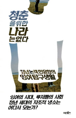 ◇ 청춘을 위한 나라는 없다 = 매체 비평지 '미디어스'에 소속된 청년 논객 한윤형의 『청춘을 위한 나라는 없다』. '정치 오타쿠'의 집요함에다가, 날카로운 문제의식을 곁들여 쓴 21세기의 청년 세대의 자기 진술서이자 잉여 선언이다. '인서울(in Seoul)' 대학에 입학하여 수업과 아르바이트를 병행하며 열심히 세상을 살아가던 평범한 청춘씨가 문득 루저가 되어 있는 자신을 발견한 후 '88만원'도 벌지 못하리라는 위기감이 들었던 날부터 스스로를 '잉여'라고 부른 기록이다. (한윤형/어크로스)