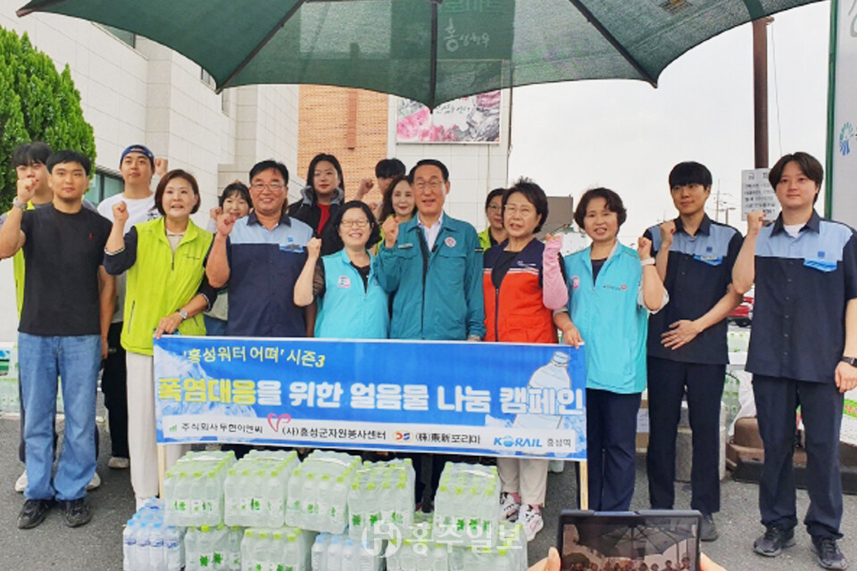 홍성군자원봉사센터(센터장 방은희)는 지역 기업과 대학으로부터 후원받은 생수(500ml) 3000개를 지난 11일과 21일 2차례에 거쳐 홍성전통시장 앞에서 연일 이어지는 폭염에 대응하기 위해 군민들에게 나누는 캠페인을 전개했다.<사진>