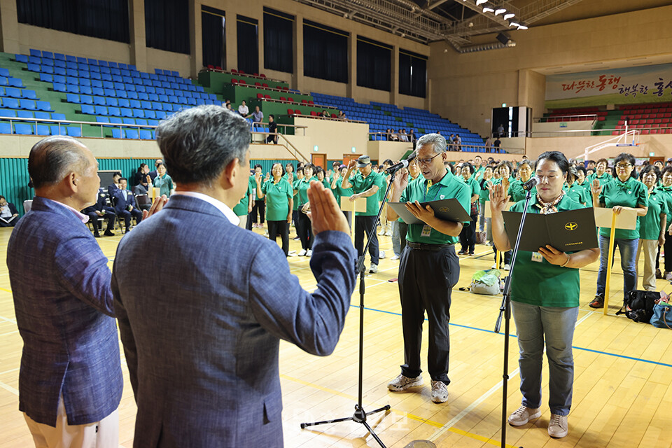 [홍주일보 홍성=한기원 기자] ㈔홍성군새마을회(회장 김건태)는 지난달 29일 홍주문화체육센터에서 읍면별 새마을지도자 1000여 명이 함께한 가운데 ‘2025년도 홍성군새마을지도자 하계수련대회’가 성황리에 개최됐다.