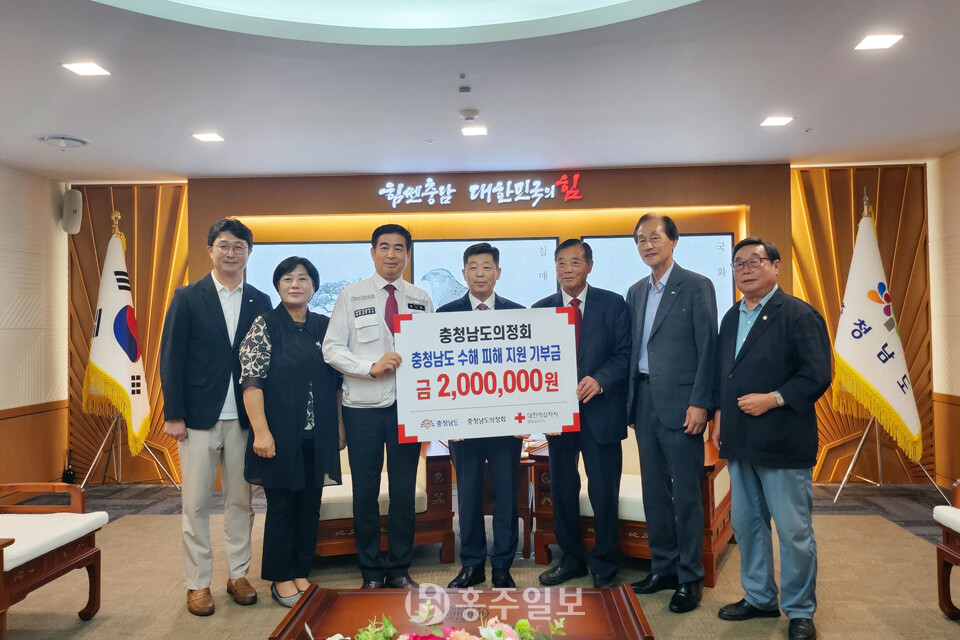 충청남도의정회(회장 신재원)는 지난 7월 집중호우로 피해를 입은 도민에게 위로의 마음을 전달하고자 의정회 회원들이 모은 성금을 대한적십자사 충남지사에 기탁했다.<사진>