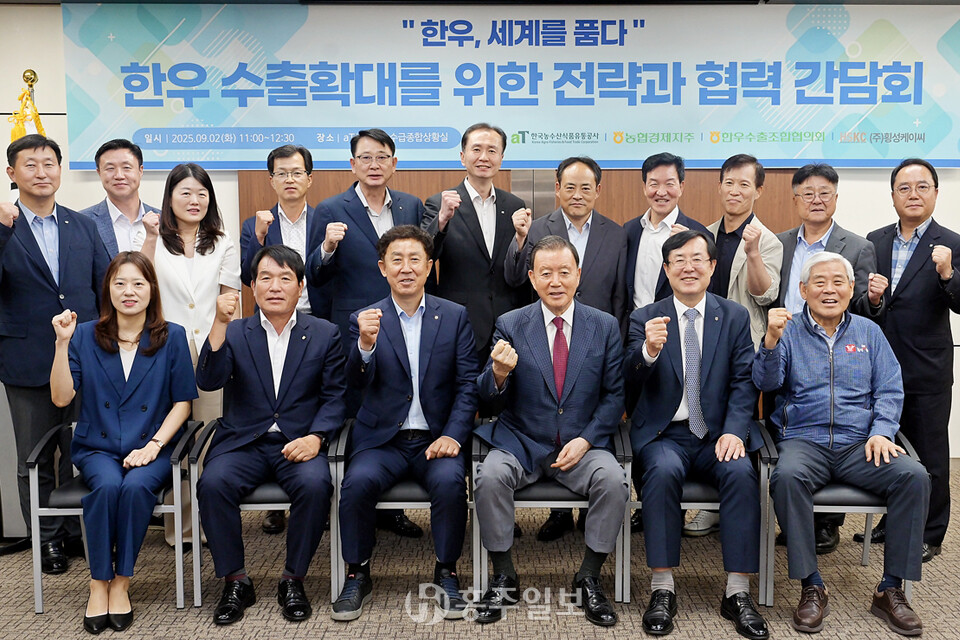 농림축산식품부(장관 송미령)와 한국농수산식품유통공사(aT, 사장 홍문표)는 지난 2일 서울 양재동 aT센터에서 ‘한우 수출 확대 간담회’를 열고 글로벌 한우 수출 전략과 협력 방안을 논의했다.<사진>