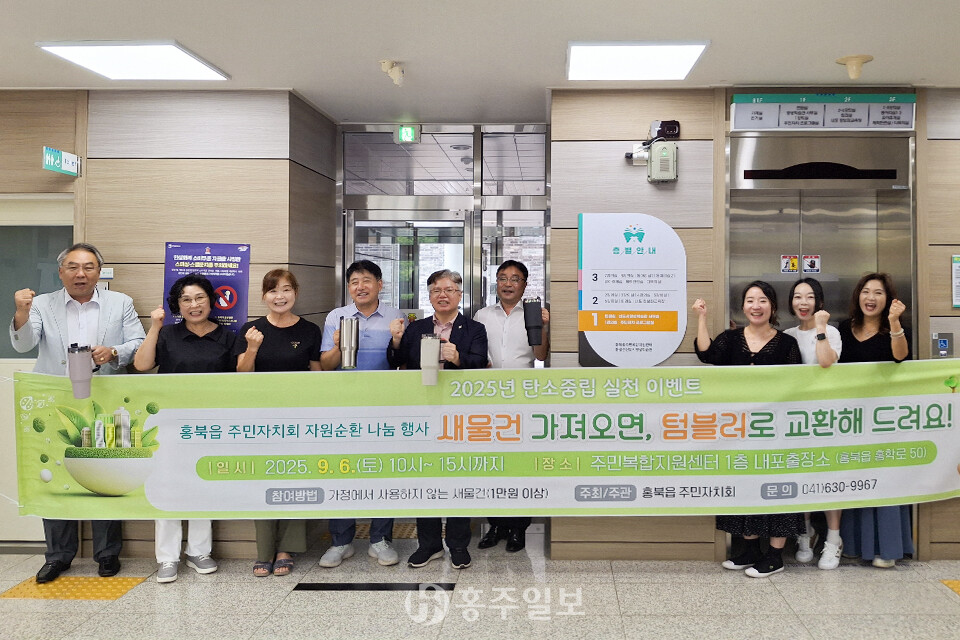 [홍주일보 홍성=한기원 기자] 홍북읍주민자치회(회장 정윤)는 지난 6일 홍북읍주민복합지원센터(내포출장소)에서 ‘2025년 탄소중립 실천 이벤트’의 일환으로 자원순환 나눔행사를 성황리에 개최했다.<사진>