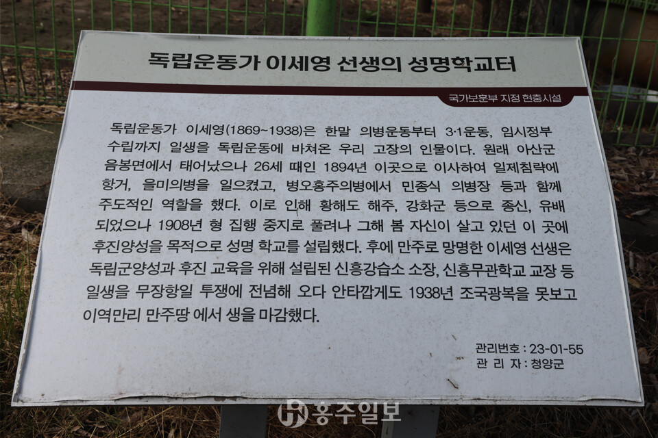 고광 이세영은 아산을 대표하는 항일독립운동가로 명실상부하다. 하지만 그동안 제대로 발굴되지 못한 채 이세영의 위업은 잘 알려지지 않았다. ‘선조 충무공의 원수를 갚으려고 항일전에 투신했다’는 이세영의 말대로 이순신 장군의 직계 손이라는 신분과 가문의 위세를 독립운동에 승화시켜 40여 년간 항일전선을 누빈 혁혁한 독립투사다. 1963년에 건국훈장 독립장이 추서됐다. 형 이세영을 따라 중국으로 망명한 동생 이창영도 군자금을 모집하다 일제 경찰에 체포돼 사망한 것으로 알려졌다. 이처럼 독립운동가 2명이 태어난 곳이 아산시 음봉면 신휴리 87-2의 생가다. 하지만 이러한 사실을 알려주는 안내판이나 표지석은 하나도 없다.