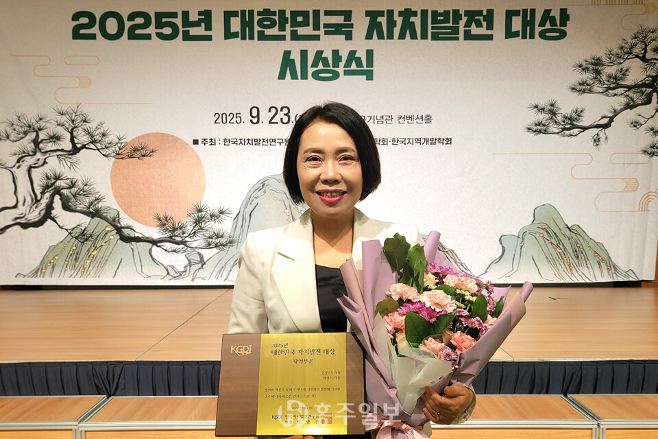 [홍주일보 한기원 기자] 충남도의회 이연희 의원(서산3·국민의힘·사진)이 지난 23일 백범 김구기념관에서 열린 ‘2025년 대한민국 자치발전 대상’ 시상식에서 광역의회 의원부문 수상자로 선정됐다.