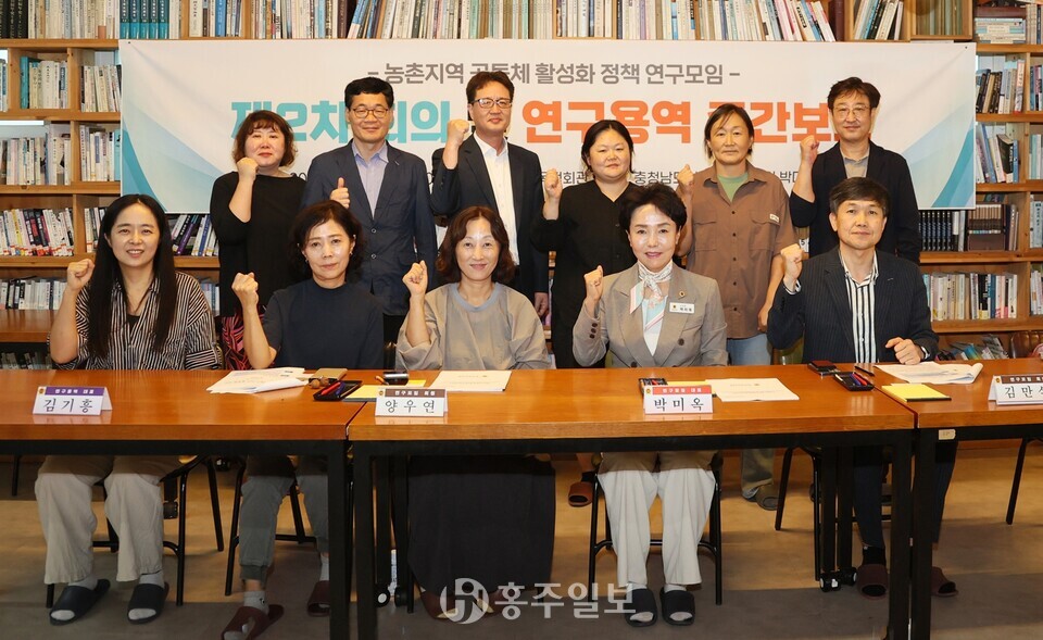 충남도의회 ‘농촌지역 공동체 활성화 정책 연구모임’(대표 박미옥 의원·국민의힘)은 지난 13일 홍성군 장곡면 오누이다목적회관에서 제2차 회의·연구용역 중간보고회를 열고, △‘충청남도 농촌 경제·사회서비스 공동체 지원센터’ 설치 △면(面) 단위 생활서비스 공백 해소 방안 등을 논의했다.