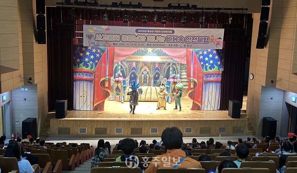 홍성군은 지난 14일 광천문예회관 대공연장에서 미취학 아동(만5~7세)을 대상으로 ‘사고뭉치 용왕님과 떠나는 바다속 안전체험’ 안전뮤지컬 공연을 열었다.<사진>